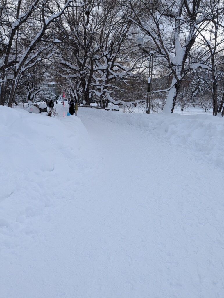 札幌の冬は、走れる場所が限られます。以前、北海道大学のコースを紹介しましたが、今回はもう一つの選択肢として中島公園を走ってきました。